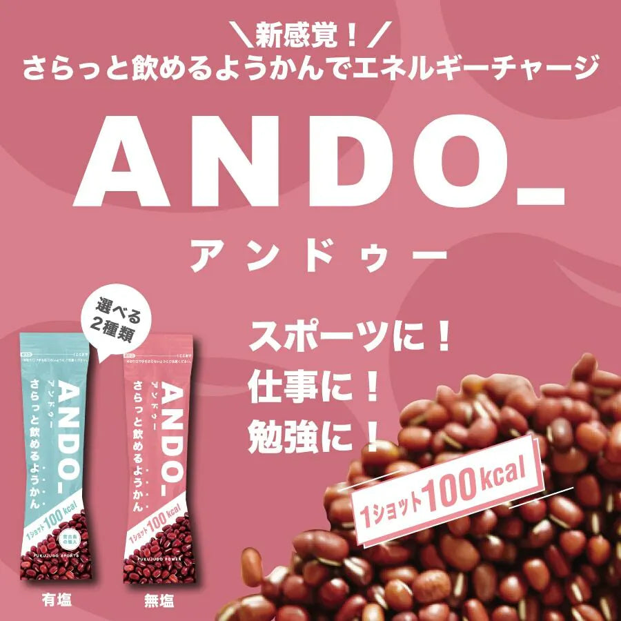 • ANDO_是以日本傳統製作和菓子技術而成的可飲用羊羹,非常適合在運動、工作或學習時補充碳水化合物的清淡飲料。