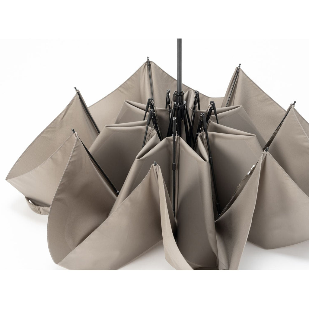 • 為解決收傘的麻煩與擺放空間不足的問題,特別開發出這款聰明又創新的摺疊傘。