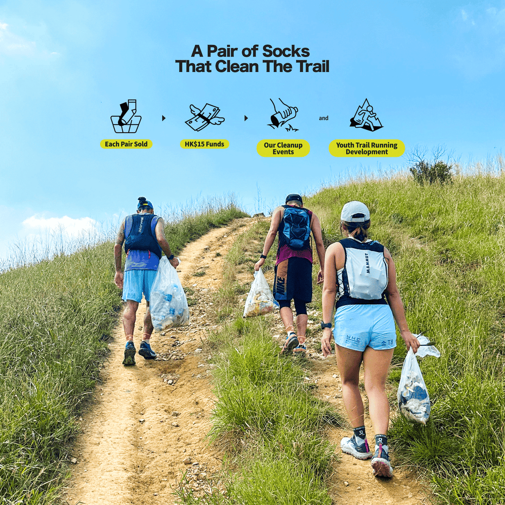 - 支持淨山活動 每售出一雙,便有港幣15元直接用於籌辦清潔活動,為團隊及熱情的志工、健行者與跑者提供支援——他們犧牲閒暇時間清理他人遺留的垃圾。您的貢獻將協助我們籌措執行這些重要行動所需的後勤與裝備。