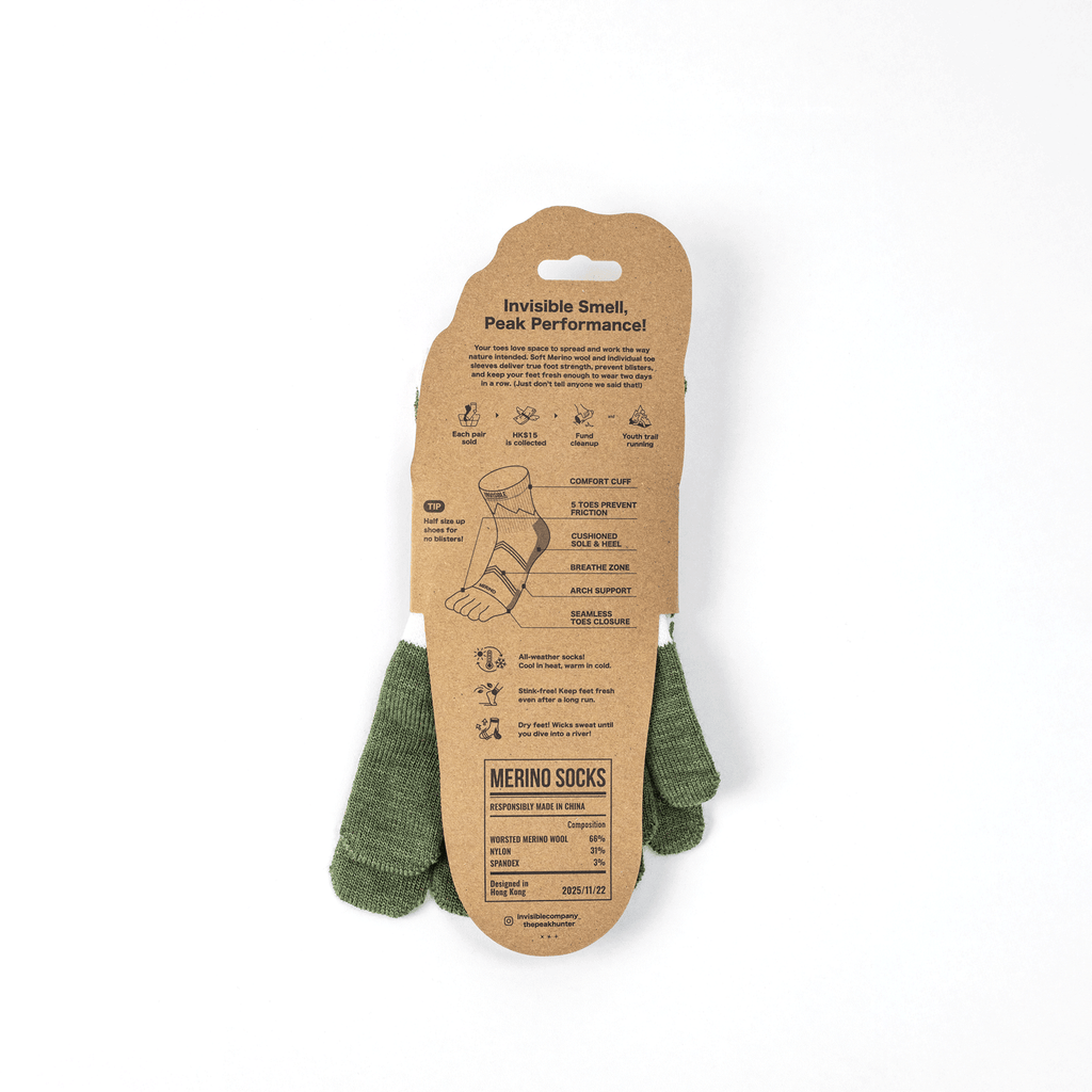 | 貨品編號 | - Invisible x The Peak Hunter Merino 5 Toe Performance Targeted Cushion Mid Crew Trail Socks