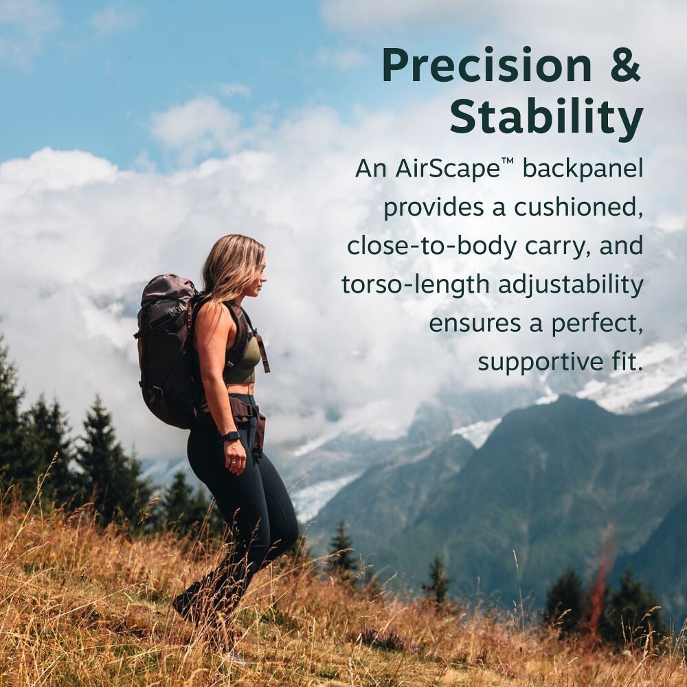 • AirScape™ 背板提供緩衝貼合的背負體驗,軀幹長度調節功能確保完美貼合且具支撐性的背負效果。